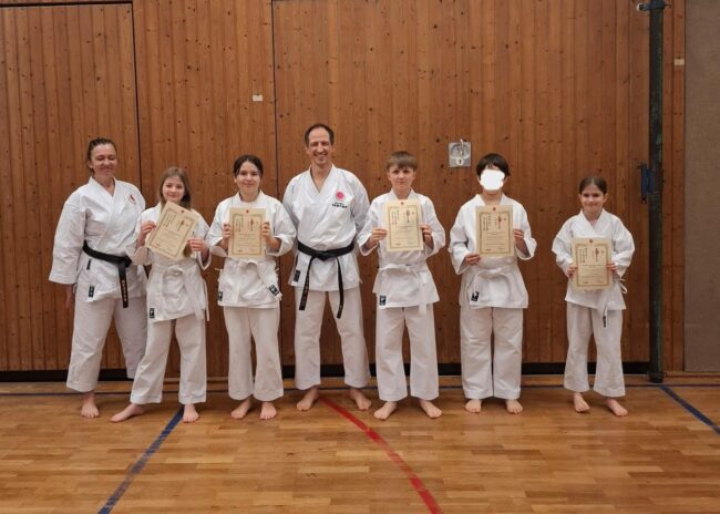 Mit großer Motivation und spürbarer Nervosität stellten sich fünf junge Karateka zur Gürtelprüfung im Karate Dojo Ochi Bonn e.V. Das Ziel: Die erste Prüfung auf dem Weg im Karate. Nach einer intensiven Vorbereitungszeit zeigten die Prüflinge unter den Augen ihrer Trainer Dagmar und Kalin sowie der Prüfer Daniel und Mo ihr Können. Zu Beginn standen die Grundtechniken (Kihon) auf dem Programm. Im Anschluss wurde das Partnertraining (Kumite) geprüft. Dabei ging es vor allem um das richtige Distanzgefühl, Kontrolle und respektvollen Umgang miteinander. Die Mühe der vergangenen Wochen zahlte sich aus: Alle fünf Prüflinge bestanden erfolgreich ihre Gürtelprüfung zum 9. Kyu. Sie nahmen ihre Urkunden mit Stolz entgegen. Trainer und Zuschauer gratulierten den jungen Karateka herzlich zu ihrem Erfolg. Die bestandene Prüfung ist für alle ein wichtiger Meilenstein und gleichzeitig Motivation, den Karate-Weg mit Fleiß und Freude weiterzugehen. Und an dieser Stelle gratuliert das ganze Karate Dojo Ochi Bonn Clemens, Juna, Konstantin, Leni und Marielle zur bestandenen Prüfung! Oss!!!