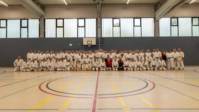 Am 11. Oktober kam es in Bonn zu einem großen Andrang in der Halle der Berthold-Brecht-Gesamtschule Tannenbusch. Rund 130 Teilnehmende wollten an diesem Tag nur eins: Den Dogi anziehen und Kata, Kata, Kata üben. Ihr Vorbild: Melissa Rathmann, zweifache Vizeweltmeisterin und neunfache Europameisterin in eben dieser Disziplin. Sie hatte sich bereit erklärt, die JKA-Standards der Heian und Sentai Katas in diesem Lehrgang zu erläutern. In der Halle herrschte Ruhe und Konzentration und die Köpfe rauchten. So viele neue Informationen, die nach der ausführlichen Erklärung und der beeindruckenden Demonstration durch Melissa selbst geübt werden konnten. Es war schweißtreibend und man musste seine volle Aufmerksamkeit beisammenhalten, um jeder Neuerung folgen zu können. Melissas unendliches Wissen über jedes Detail der einzelnen Katas kam sehr gut an: Alle wünschten sich im Nachgang einen Teil zwei! Die vielen helfenden Hände sorgten dafür, dass sich die aufgebrauchten Ressourcen wieder füllen konnten. Die Cafeteria versorgte alle mit Nervennahrung und die eigens vorbereiteten (Notfall-)Körbchen in den Umkleiden ließen keinen Wunsch offen. Herzlichen Dank an alle Teilnehmenden für eure Offenheit, euren Willen, euch weiterzubilden und natürlich an alle unsere Helfer ein riesiges Lob und großer Dank! P.S.: Teil zwei ist in Arbeit.