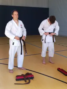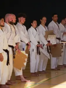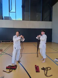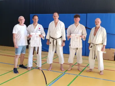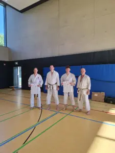 Am Samstag, den 28. Juni, fand in Ehrenfeld beim Jubiläumslehrgang des Shintai Köln ein bedeutender Moment für Kalin und Helge statt. Die beiden Karateka haben ihre Prüfung zum ersten DAN erfolgreich bestanden, ein großer Meilenstein in ihrer Karate-Karriere! Das Wetter war an diesem Tag äußerst heiß, was die Anspannung und die Anstrengung noch zusätzlich erhöhte.