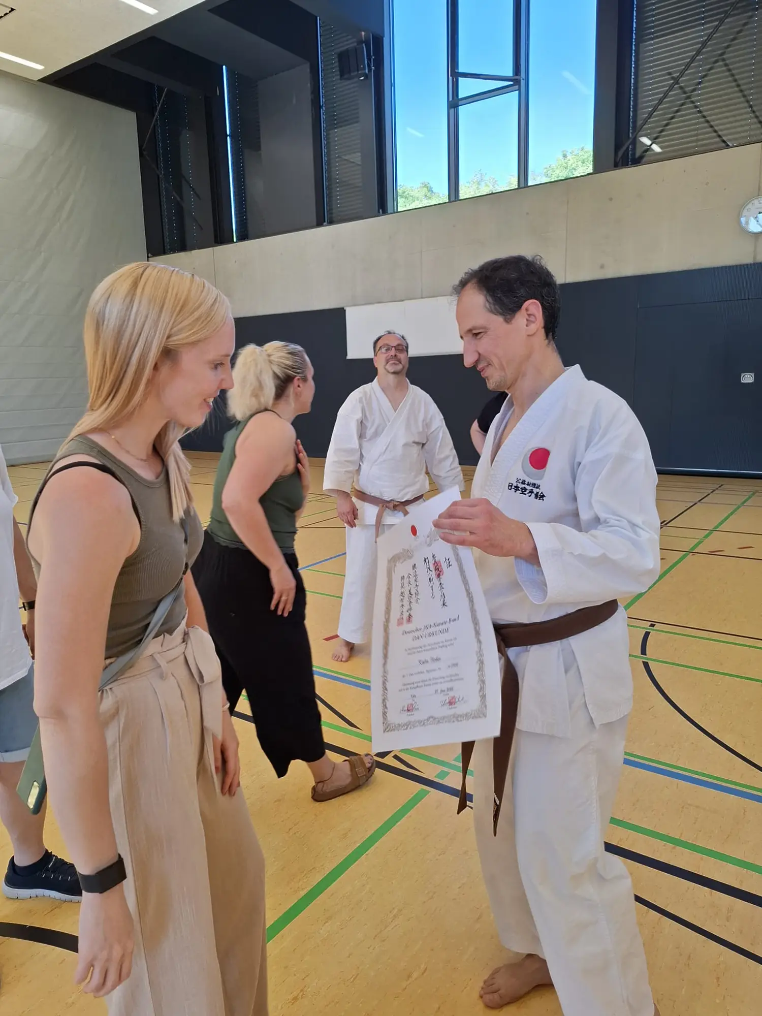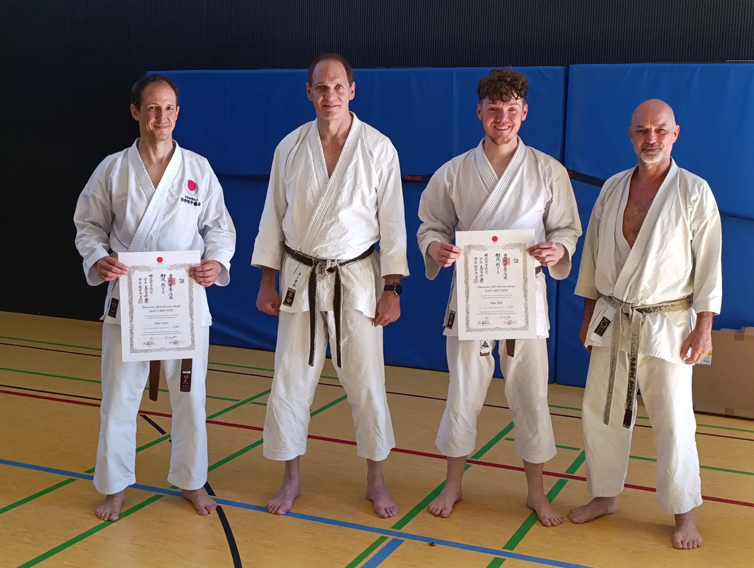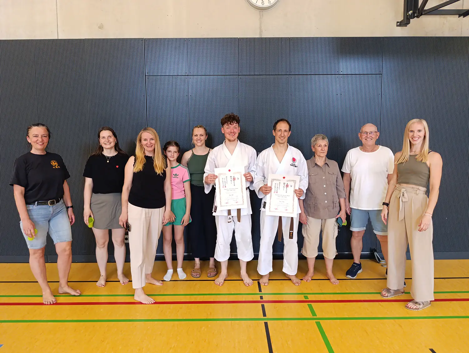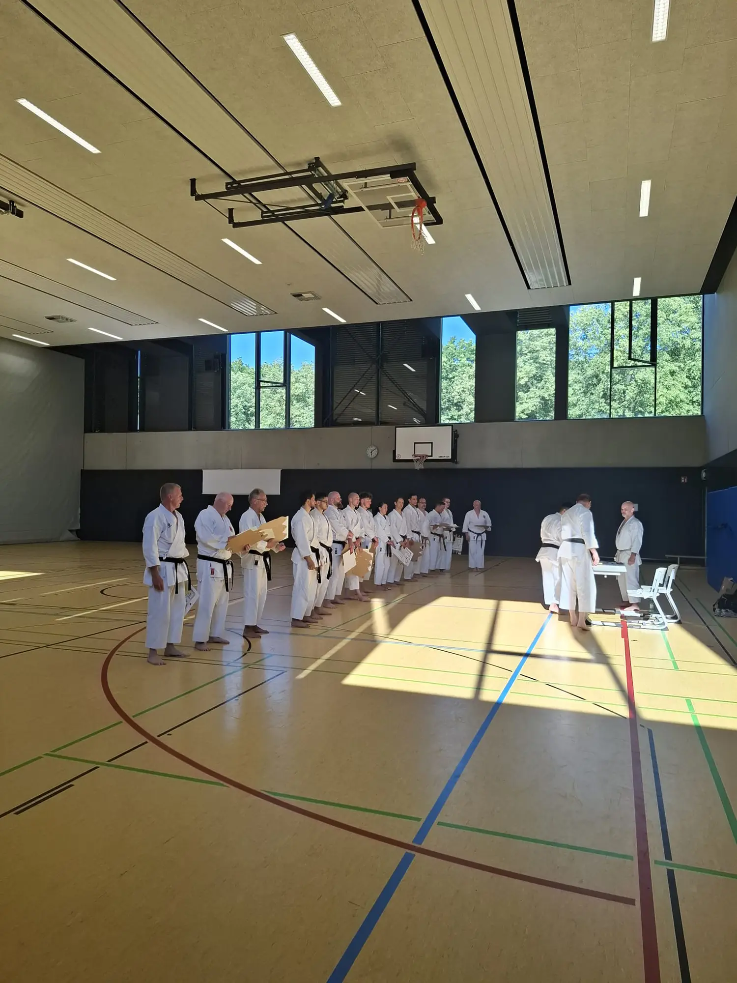 Am Samstag, den 28. Juni, fand in Ehrenfeld beim Jubiläumslehrgang des Shintai Köln ein bedeutender Moment für Kalin und Helge statt. Die beiden Karateka haben ihre Prüfung zum ersten DAN erfolgreich bestanden, ein großer Meilenstein in ihrer Karate-Karriere! Das Wetter war an diesem Tag äußerst heiß, was die Anspannung und die Anstrengung noch zusätzlich erhöhte.