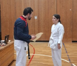 Nach einer intensiven Vorbereitungszeit zeigten die Prüflinge unter den Augen ihrer Trainer Dagmar und Kalin sowie der Prüfer Daniel und Mo ihr Können. Zu Beginn standen die Grundtechniken (Kihon) auf dem Programm. Im Anschluss wurde das Partnertraining (Kumite) geprüft. Dabei ging es vor allem um das richtige Distanzgefühl, Kontrolle und respektvollen Umgang miteinander.