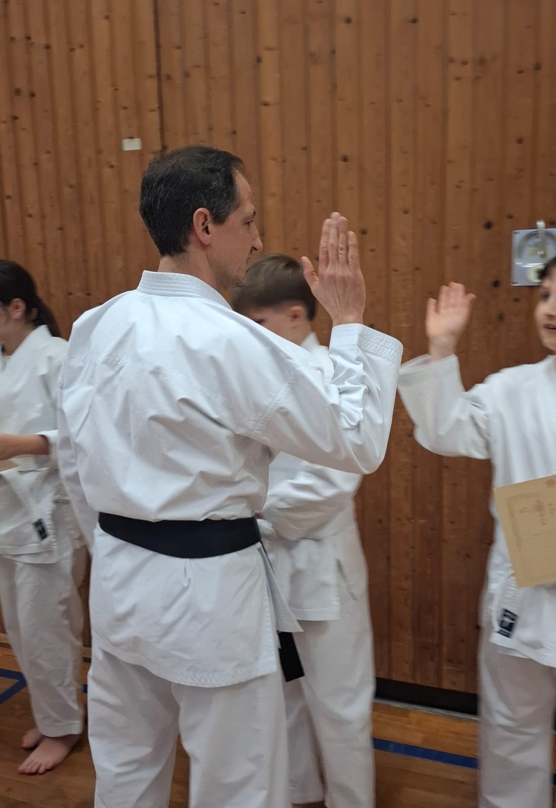Trainer und Zuschauer gratulierten den jungen Karateka herzlich zu ihrem Erfolg. Die bestandene Prüfung ist für alle ein wichtiger Meilenstein und gleichzeitig Motivation, den Karate-Weg mit Fleiß und Freude weiterzugehen.
