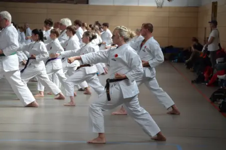 Wie jedes Jahr kamen über 900 Karateka aus Deutschland und umliegenden Ländern zusammen, um zu trainieren, zu lernen und zu feiern. Auch aus dem Karate Dojo Ochi Bonn fuhren 20 Mitglieder in den Osten, um teilzunehmen. Die große Gruppe freute sich auf neue Impulse, neue und alte Gesichter und natürlich auf Katas, Katas, Katas.