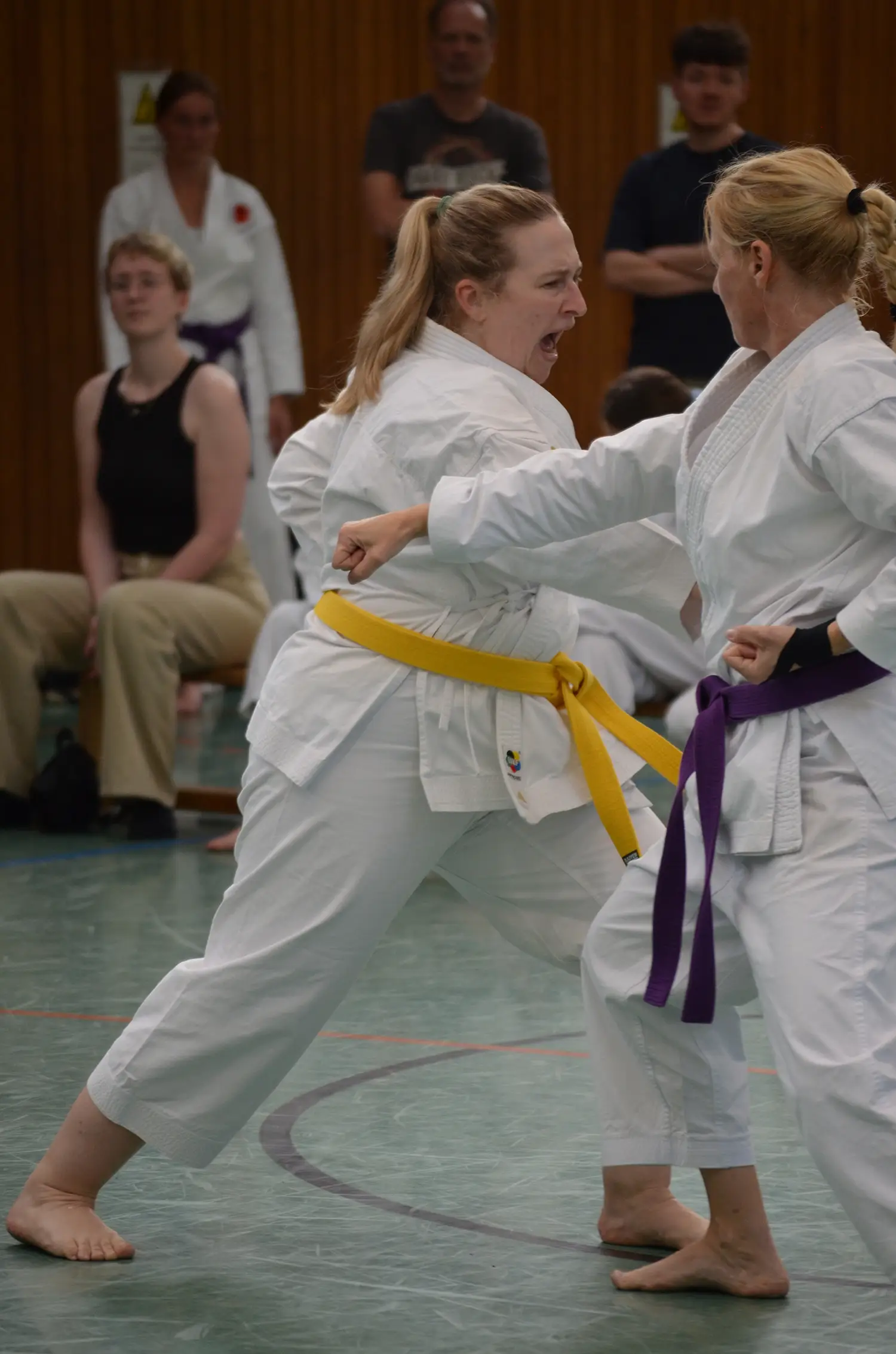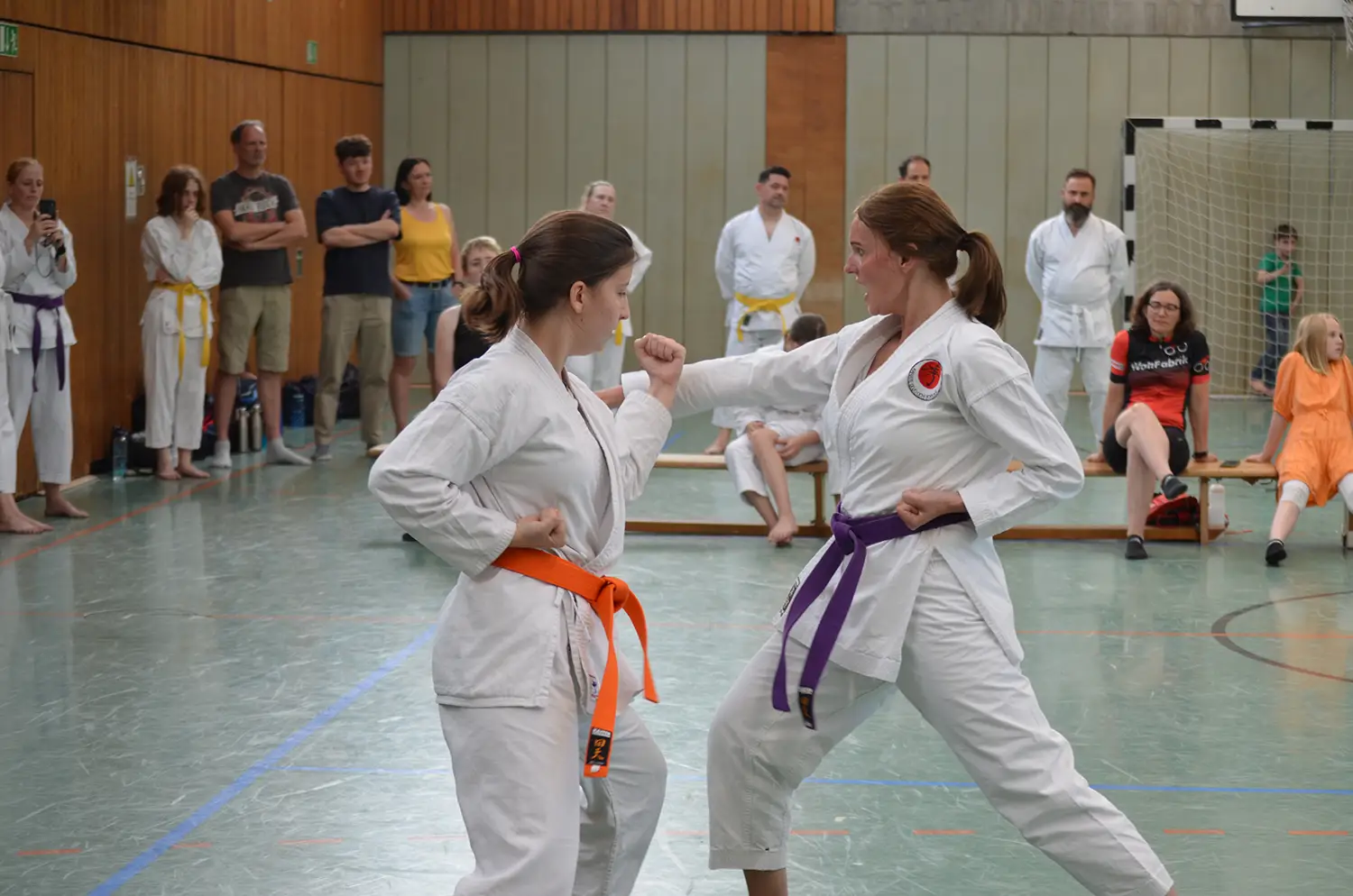 Heute stellten sich 16 Prüflinge der Herausforderung, eine neue Gürtelstufe zu erlangen. In der Kyu Prüfung zeigten sie der Prüferin Melissa Rathmann, was sie in den letzten Monaten bei Kihon, Kata und Kumite dazu gelernt haben. Alle gaben ihr Bestes und wir sind stolz auf euch!